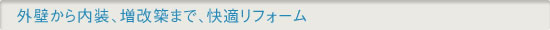 当社では、住まいに関わるあらゆるリフォームをご提供いたします。屋根をはじめ外壁リフォームからお部屋の増改築、キッチンや浴室、トイレ、洗面などの水まわりや高齢者用改築まで幅広く対応しています。 お客様のご希望にあったリフォームを、丁寧にご提案し確実に施工いたします。